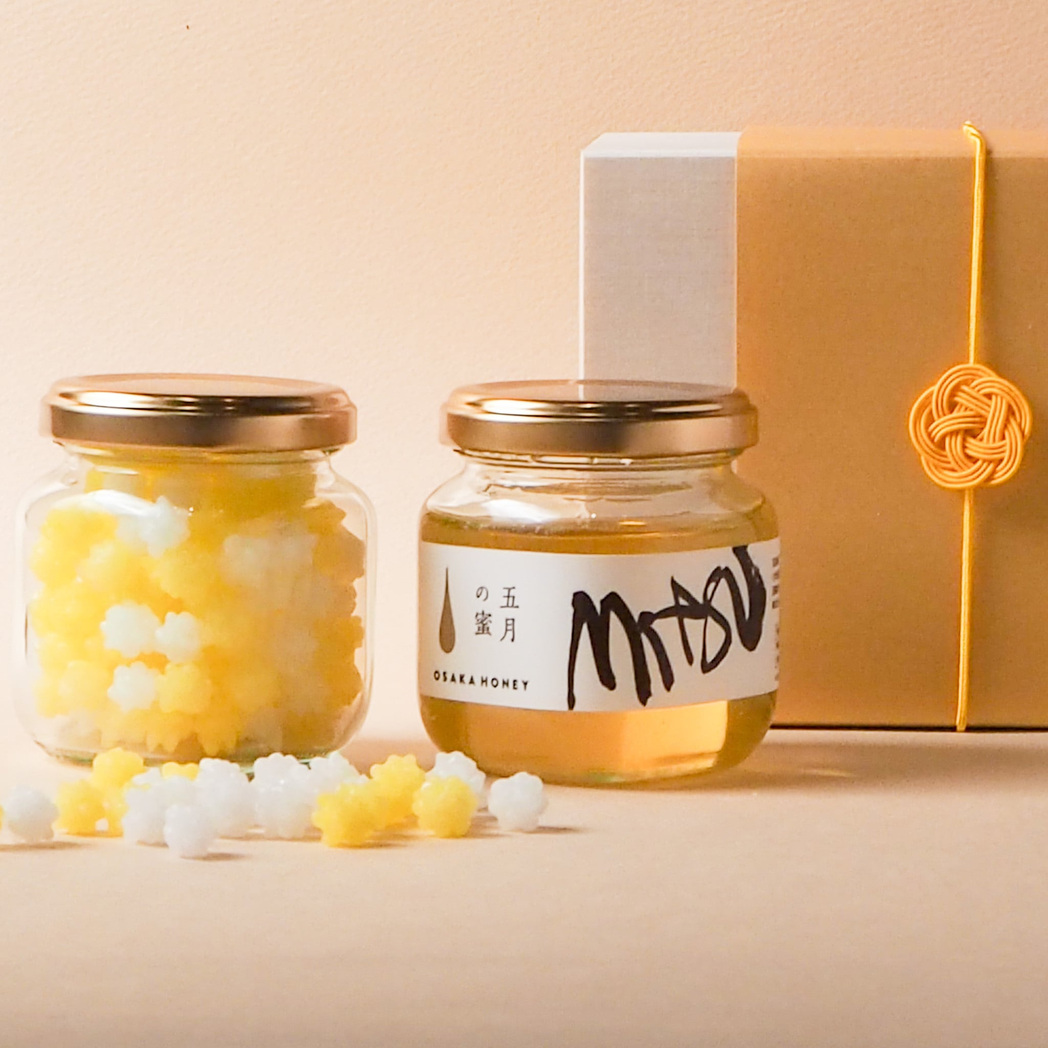 黄金色のハチミツと、まあるい形の金平糖は古くから 幸福・繁栄・良縁 を象徴する縁起物として親しまれてきました。晴れの日の贈りものとしても、自信を持ってお選びいただけます。