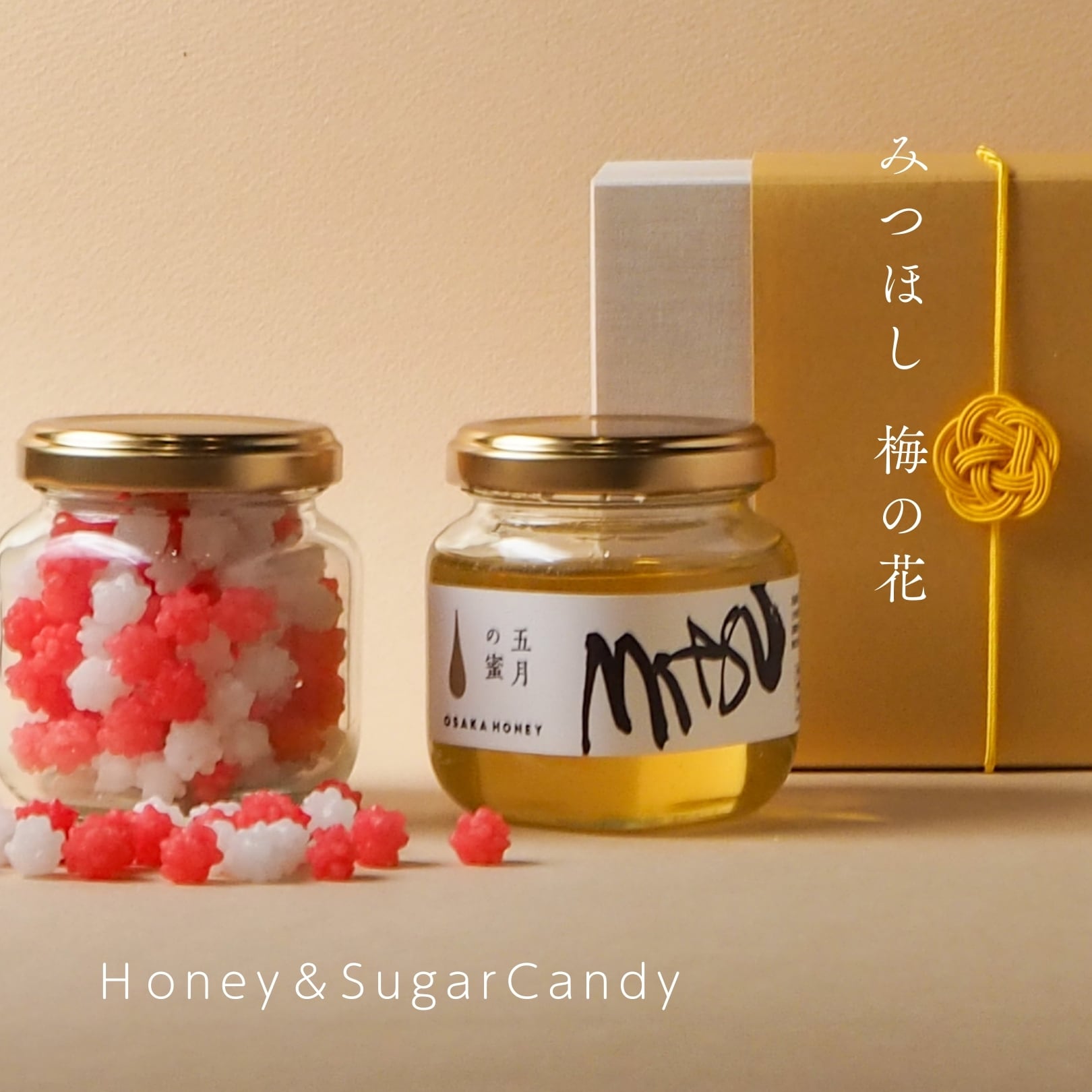 ★大阪の都市部でミツバチたちが集めた 生はちみつ と、大阪の象徴的な花として親しまれてきた “梅”をテーマに仕立てた蜂蜜金平糖 を詰め合わせた、大阪ハニーならではの贈りものセットです。