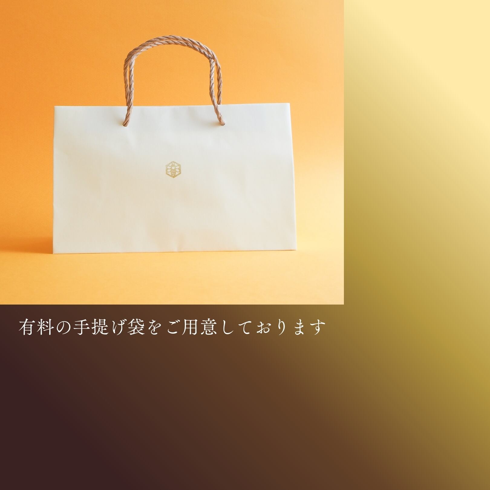 木箱+水引+金の巻紙を使用した立体的パッケージのため、全面包装紙でのお包みには対応しておりません。オリジナル熨斗・掛け紙(短冊)の対応は可能です。※紙袋は付属しません。