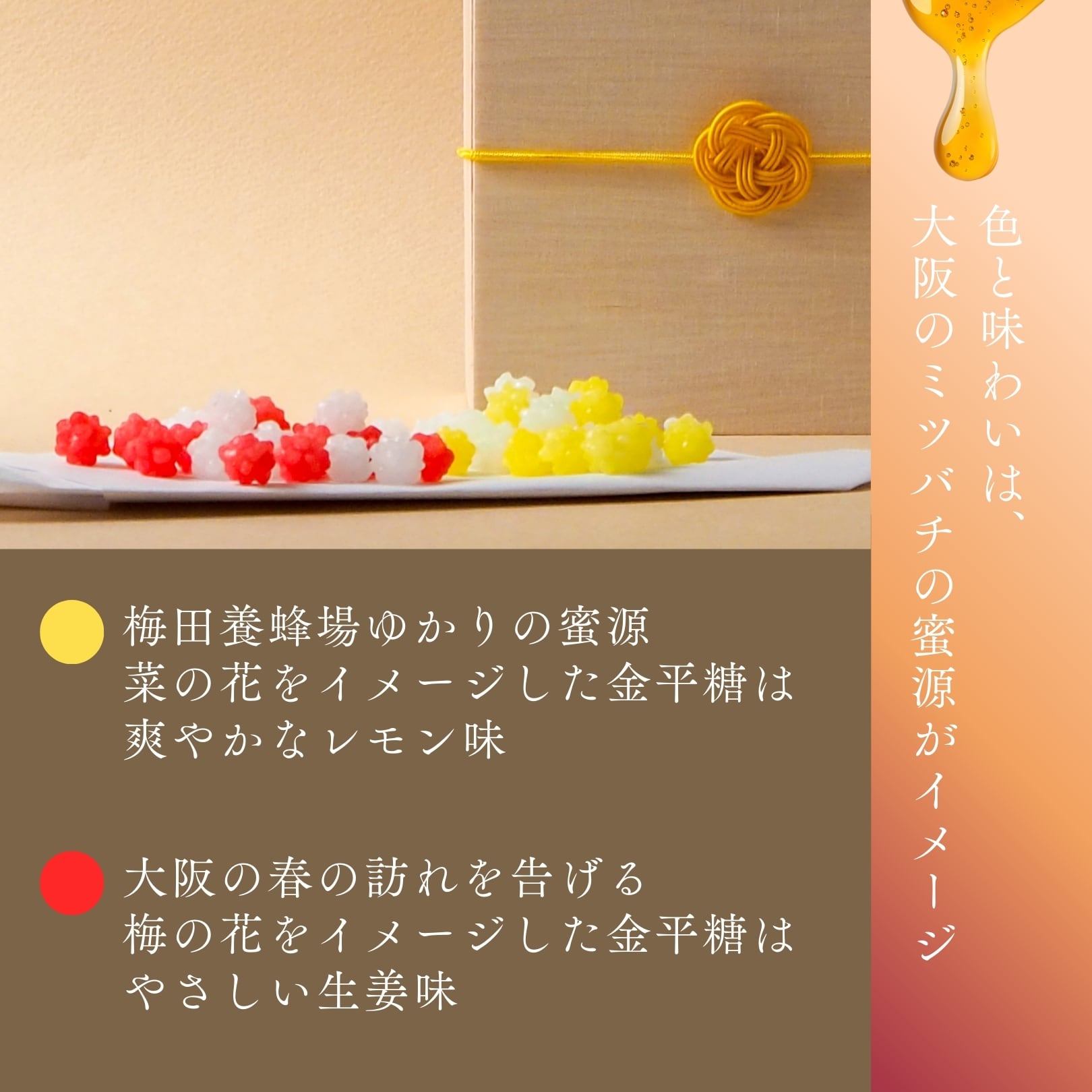 ★大阪の蜜源を色と香りで表現した 2 色の金平糖